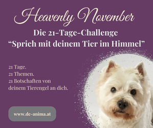 Liebe Christina, danke für die wieder wunderbare Challenge mit tollen Themen (und Einleitungstexten). Es hat mich wieder mehr erkennen lassen, tiefer in Verbindung mit meinen Hündinnen gehen lassen und auch erinnert, was im Alltag gerne etwas untergeht. - Die Gruppe war sehr fein, es war schön zu sehen, wie viele Gespräche zusammengekommen sind und jeder mit Freude dabei ist. Nicht zu vergessen die Botschaften der Tiere. Wenn du wieder eine Challenge machst, sind wir gerne dabei.